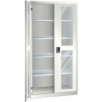 Szafki warsztatowe LISTA z półkami, 1000x500x1950mm, drzwi z pleksi, kolor jasnoszary