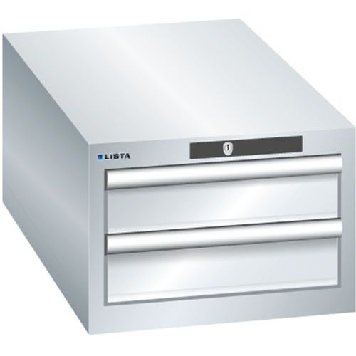 Szafki warsztatowe Lista z szufladami, 2 lub 3 szufladami. Zamek na klucz. Zamek cylindryczny. Optymalne wykorzystanie dzięki pełnemu wysuwowi i optymalnej wysokości frontu szuflady. Doskonała ochrona przed kurzem, cieczami i uszkodzeniami mechanicznymi dzięki zamkniętej ramie z powierzchnią odporną na uderzenia i ścieranie. System zabezpieczający przed wypadnięciem szuflady oraz blokada każdej szuflady osobno. Ochrona antykorozyjna poprzez elektroforetyczne malowanie zanurzeniowe i natryskiwanie. Zoptymalizowana przestrzeń do przechowywania i organizacja dzięki przegródkom LISTA dostosowanym do każdego zastosowania oraz szufladom wyposażonym w rowki i perforacje. Profesjonalne etykietowanie z oprogramowaniem LISTA Script i odchylanym uchwytem na etykiety. Idealnie cichy ruch dzięki prowadnicy bez poprzeczki. Przegródki do szuflad nie są dołączone. Należy je zakupić osobno. Maks. obciążenie (kg) : 75 kg