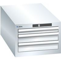 Szafki warsztatowe Lista z szufladami, 2 lub 3 szufladami. Zamek na klucz. Zamek cylindryczny. Optymalne wykorzystanie dzięki pełnemu wysuwowi i optymalnej wysokości frontu szuflady. Doskonała ochrona przed kurzem, cieczami i uszkodzeniami mechanicznymi dzięki zamkniętej ramie z powierzchnią odporną na uderzenia i ścieranie. System zabezpieczający przed wypadnięciem szuflady oraz blokada każdej szuflady osobno. Ochrona antykorozyjna poprzez elektroforetyczne malowanie zanurzeniowe i natryskiwanie. Zoptymalizowana przestrzeń do przechowywania i organizacja dzięki przegródkom LISTA dostosowanym do każdego zastosowania oraz szufladom wyposażonym w rowki i perforacje. Profesjonalne etykietowanie z oprogramowaniem LISTA Script i odchylanym uchwytem na etykiety. Idealnie cichy ruch dzięki prowadnicy bez poprzeczki. Przegródki do szuflad nie są dołączone. Należy je zakupić osobno. Maks. obciążenie (kg) : 75 kg