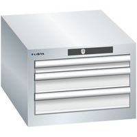 Szafki warsztatowe Lista z szufladami, 2 lub 3 szufladami. Zamek na klucz. Optymalne wykorzystanie dzięki pełnemu wysuwowi i optymalnej wysokości frontu szuflady. Doskonała ochrona przed kurzem, cieczami i uszkodzeniami mechanicznymi dzięki zamkniętej ramie z powierzchnią odporną na uderzenia i ścieranie. System zabezpieczający przed wypadnięciem szuflady oraz blokada każdej szuflady osobno. Ochrona antykorozyjna poprzez elektroforetyczne malowanie zanurzeniowe i natryskiwanie. Zoptymalizowana przestrzeń do przechowywania i organizacja dzięki przegródkom LISTA dostosowanym do każdego zastosowania oraz szufladom wyposażonym w rowki i perforacje. Profesjonalne etykietowanie przy użyciu oprogramowania LISTA Script i uchwytu do wkładania etykiet z możliwością odchylenia. Idealnie cichy ruch dzięki prowadnicy bez poprzeczki Przegródki do szuflad nie są dołączone. Należy je zakupić osobno.