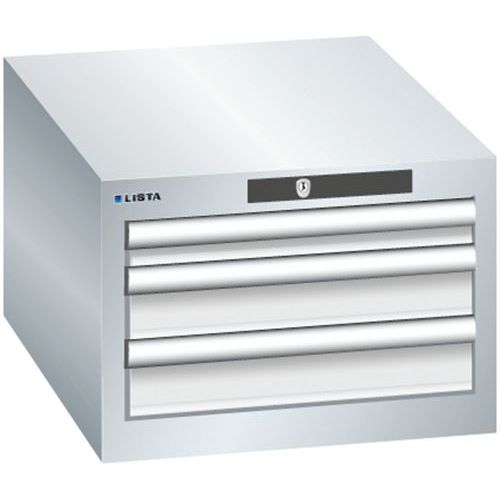 Szafki warsztatowe Lista z szufladami, 2 lub 3 szufladami. Zamek na klucz. Optymalne wykorzystanie dzięki pełnemu wysuwowi i optymalnej wysokości frontu szuflady. Doskonała ochrona przed kurzem, cieczami i uszkodzeniami mechanicznymi dzięki zamkniętej ramie z powierzchnią odporną na uderzenia i ścieranie. System zabezpieczający przed wypadnięciem szuflady oraz blokada każdej szuflady osobno. Ochrona antykorozyjna poprzez elektroforetyczne malowanie zanurzeniowe i natryskiwanie. Zoptymalizowana przestrzeń do przechowywania i organizacja dzięki przegródkom LISTA dostosowanym do każdego zastosowania oraz szufladom wyposażonym w rowki i perforacje. Profesjonalne etykietowanie przy użyciu oprogramowania LISTA Script i uchwytu do wkładania etykiet z możliwością odchylenia. Idealnie cichy ruch dzięki prowadnicy bez poprzeczki Przegródki do szuflad nie są dołączone. Należy je zakupić osobno. Maks. obciążenie (kg) : 75 kg