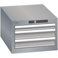 Szafki warsztatowe Lista z szufladami, 2 lub 3 szufladami. Zamek na klucz. Optymalne wykorzystanie dzięki pełnemu wysuwowi i optymalnej wysokości frontu szuflady. Doskonała ochrona przed kurzem, cieczami i uszkodzeniami mechanicznymi dzięki zamkniętej ramie z powierzchnią odporną na uderzenia i ścieranie. System zabezpieczający przed wypadnięciem szuflady oraz blokada każdej szuflady osobno. Ochrona antykorozyjna poprzez elektroforetyczne malowanie zanurzeniowe i natryskiwanie. Zoptymalizowana przestrzeń do przechowywania i organizacja dzięki przegródkom LISTA dostosowanym do każdego zastosowania oraz szufladom wyposażonym w rowki i perforacje. Profesjonalne etykietowanie przy użyciu oprogramowania LISTA Script i uchwytu do wkładania etykiet z możliwością odchylenia. Idealnie cichy ruch dzięki prowadnicy bez poprzeczki Przegródki do szuflad nie są dołączone. Należy je zakupić osobno. Maks. obciążenie (kg) : 75 kg