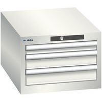 Szafki warsztatowe Lista z szufladami, 2 lub 3 szufladami. Zamek na klucz. Optymalne wykorzystanie dzięki pełnemu wysuwowi i optymalnej wysokości frontu szuflady. Doskonała ochrona przed kurzem, cieczami i uszkodzeniami mechanicznymi dzięki zamkniętej ramie z powierzchnią odporną na uderzenia i ścieranie. System zabezpieczający przed wypadnięciem szuflady oraz blokada każdej szuflady osobno. Ochrona antykorozyjna poprzez elektroforetyczne malowanie zanurzeniowe i natryskiwanie. Zoptymalizowana przestrzeń do przechowywania i organizacja dzięki przegródkom LISTA dostosowanym do każdego zastosowania oraz szufladom wyposażonym w rowki i perforacje. Profesjonalne etykietowanie przy użyciu oprogramowania LISTA Script i uchwytu do wkładania etykiet z możliwością odchylenia. Idealnie cichy ruch dzięki prowadnicy bez poprzeczki Przegródki do szuflad nie są dołączone. Należy je zakupić osobno.