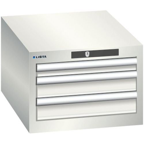 Szafki warsztatowe Lista z szufladami, 2 lub 3 szufladami. Zamek na klucz. Optymalne wykorzystanie dzięki pełnemu wysuwowi i optymalnej wysokości frontu szuflady. Doskonała ochrona przed kurzem, cieczami i uszkodzeniami mechanicznymi dzięki zamkniętej ramie z powierzchnią odporną na uderzenia i ścieranie. System zabezpieczający przed wypadnięciem szuflady oraz blokada każdej szuflady osobno. Ochrona antykorozyjna poprzez elektroforetyczne malowanie zanurzeniowe i natryskiwanie. Zoptymalizowana przestrzeń do przechowywania i organizacja dzięki przegródkom LISTA dostosowanym do każdego zastosowania oraz szufladom wyposażonym w rowki i perforacje. Profesjonalne etykietowanie przy użyciu oprogramowania LISTA Script i uchwytu do wkładania etykiet z możliwością odchylenia. Idealnie cichy ruch dzięki prowadnicy bez poprzeczki Przegródki do szuflad nie są dołączone. Należy je zakupić osobno. Maks. obciążenie (kg) : 75 kg