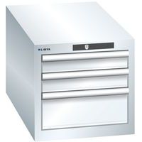 Szafki warsztatowe Lista z szufladami, 3 lub 4 szufladami. Zamek na klucz. Zamek cylindryczny. Optymalne wykorzystanie dzięki pełnemu wysuwowi i optymalnej wysokości frontu szuflady. Doskonała ochrona przed kurzem, cieczami i uszkodzeniami mechanicznymi dzięki zamkniętej ramie z powierzchnią odporną na uderzenia i ścieranie. System zabezpieczający przed wypadnięciem szuflady oraz blokada każdej szuflady osobno. Ochrona antykorozyjna poprzez elektroforetyczne malowanie zanurzeniowe i natryskiwanie. Zoptymalizowana przestrzeń do przechowywania i organizacja dzięki przegródkom LISTA dostosowanym do każdego zastosowania oraz szufladom wyposażonym w rowki i perforacje. Profesjonalne etykietowanie z oprogramowaniem LISTA Script i odchylanym uchwytem na etykiety. Idealnie cichy ruch dzięki prowadnicy bez poprzeczki. Przegródki do szuflad nie są dołączone. Należy je zakupić osobno. Maks. obciążenie (kg) : 75 kg