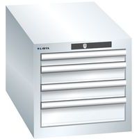 Szafki warsztatowe Lista z szufladami, 3 lub 4 szufladami. Zamek na klucz. Zamek cylindryczny. Optymalne wykorzystanie dzięki pełnemu wysuwowi i optymalnej wysokości frontu szuflady. Doskonała ochrona przed kurzem, cieczami i uszkodzeniami mechanicznymi dzięki zamkniętej ramie z powierzchnią odporną na uderzenia i ścieranie. System zabezpieczający przed wypadnięciem szuflady oraz blokada każdej szuflady osobno. Ochrona antykorozyjna poprzez elektroforetyczne malowanie zanurzeniowe i natryskiwanie. Zoptymalizowana przestrzeń do przechowywania i organizacja dzięki przegródkom LISTA dostosowanym do każdego zastosowania oraz szufladom wyposażonym w rowki i perforacje. Profesjonalne etykietowanie z oprogramowaniem LISTA Script i odchylanym uchwytem na etykiety. Idealnie cichy ruch dzięki prowadnicy bez poprzeczki. Przegródki do szuflad nie są dołączone. Należy je zakupić osobno. Maks. obciążenie (kg) : 75 kg
