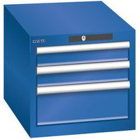 Szafki warsztatowe Lista z szufladami, 3 lub 4 szufladami. Zamek na klucz. Optymalne wykorzystanie dzięki pełnemu wysuwowi i optymalnej wysokości frontu szuflady. Doskonała ochrona przed kurzem, cieczami i uszkodzeniami mechanicznymi dzięki zamkniętej ramie z powierzchnią odporną na uderzenia i ścieranie. System zabezpieczający przed wypadnięciem szuflady oraz blokada każdej szuflady osobno. Ochrona antykorozyjna poprzez elektroforetyczne malowanie zanurzeniowe i natryskiwanie. Zoptymalizowana przestrzeń do przechowywania i organizacja dzięki przegródkom LISTA dostosowanym do każdego zastosowania oraz szufladom wyposażonym w rowki i perforacje. Profesjonalne etykietowanie z oprogramowaniem LISTA Script i odchylanym uchwytem na etykiety. Idealnie cichy ruch dzięki prowadnicy bez poprzeczki Przegródki do szuflad nie są dołączone. Należy je zakupić osobno. Maks. obciążenie (kg) : 75 kg