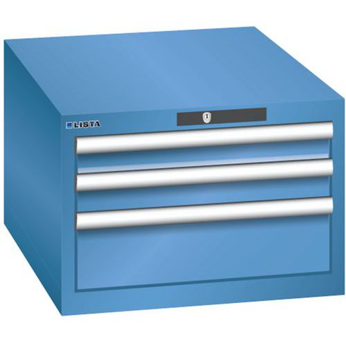Szafka warsztatowa LISTA, 3 szuflady = 2x 75 + 1x 150mm, 564x725x383mm, niebieska