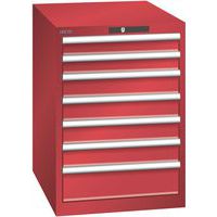 Szafka warsztatowa LISTA, 7 szuflad = 2 x 75 / 4 x 100 / 1 x 150, 564x725x800 mm, czerwona
