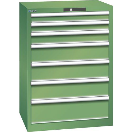 Szafka warsztatowa LISTA, 7 szuflad = 2x75 + 1x100 + 3x150 + 1x200mm, 717x572x1000mm, zielona