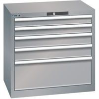 Szafka warsztatowa z szufladami LISTA, 5 szuflad = 2x75 + 2x100 + 1x250 mm, 717x572x700 mm, szaro-srebrny
