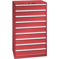 Szafki warsztatowe szufladowe LISTA, 9 szuflad = 9x150mm, nośność szuflad 75kg, 870x725x1450mm, kolor czerwony