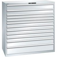 Szafki warsztatowe Lista z szufladami, 12 szuflad. Nośność 200 kg. Optymalne wykorzystanie dzięki pełnemu wysuwowi i optymalnej wysokości frontu szuflady. Doskonała ochrona przed kurzem, cieczami i uszkodzeniami mechanicznymi dzięki zamkniętej ramie z powierzchnią odporną na uderzenia i ścieranie. Bezpieczeństwo: zabezpieczenie przed wypadnięciem, które zapobiega wypadnięciu szuflady i blokada każdej szuflady (system zapobiegający przewróceniu). Ochrona antykorozyjna poprzez elektroforetyczne malowanie zanurzeniowe i natryskiwanie. Zoptymalizowana przestrzeń do przechowywania i organizacja dzięki przegródkom LISTA dostosowanym do każdego zastosowania oraz szufladom wyposażonym w rowki i perforacje. Profesjonalne etykietowanie z oprogramowaniem LISTA Script i odchylanym uchwytem na etykiety. Idealnie cichy ruch dzięki prowadnicy bez poprzeczki. Maks. obciążenie (kg) : 200 kg
