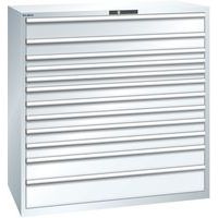 Szafki warsztatowe Lista z szufladami, 12 szuflad. Nośność 200 kg. Optymalne wykorzystanie dzięki pełnemu wysuwowi i optymalnej wysokości frontu szuflady. Doskonała ochrona przed kurzem, cieczami i uszkodzeniami mechanicznymi dzięki zamkniętej ramie z powierzchnią odporną na uderzenia i ścieranie. Bezpieczeństwo: zabezpieczenie przed wypadnięciem, które zapobiega wypadnięciu szuflady i blokada każdej szuflady (system zapobiegający przewróceniu). Ochrona antykorozyjna poprzez elektroforetyczne malowanie zanurzeniowe i natryskiwanie. Zoptymalizowana przestrzeń do przechowywania i organizacja dzięki przegródkom LISTA dostosowanym do każdego zastosowania oraz szufladom wyposażonym w rowki i perforacje. Profesjonalne etykietowanie z oprogramowaniem LISTA Script i odchylanym uchwytem na etykiety. Idealnie cichy ruch dzięki prowadnicy bez poprzeczki. Maks. obciążenie (kg) : 200 kg