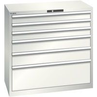 Szafka warsztatowa Lista z szufladami, nośność 75 kg, 6 szuflad, jasnoszara