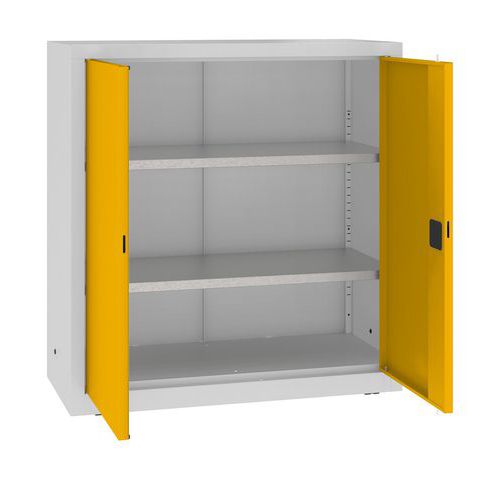 Metalowa szafka warsztatowa, 104 x 100 x 43,5 cm, 2 półki, szaro-żółta