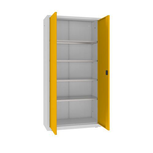 Metalowa szafka warsztatowa, 199 x 100 x 43,5 cm, 4 półki, szaro-żółta