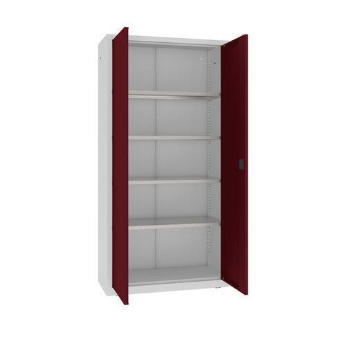 Metalowa szafka warsztatowa, 199 x 100 x 43,5 cm, 4 półki, szara/ciemna. czerwony