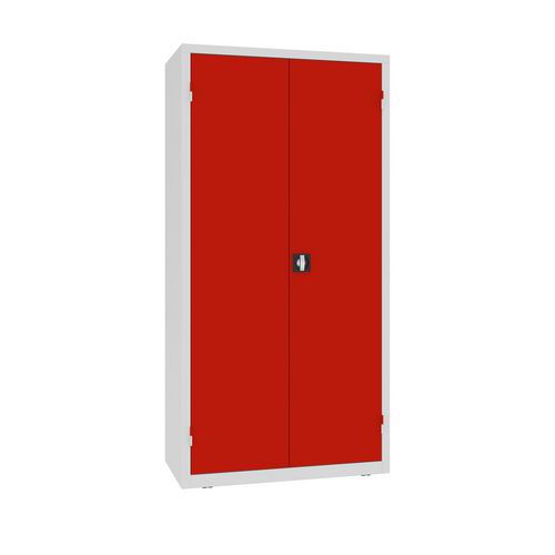 Metalowe szafy warsztatowe z trzema szufladami i czterema półkami, przeznaczone do profesjonalnego użytku w suchych i wentylowanych pomieszczeniach wewnętrznych.