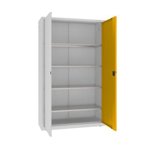 Metalowa szafka warsztatowa, 199 x 120 x 43,5 cm, 4 półki, szaro-żółta