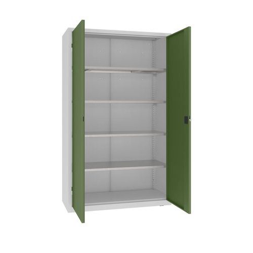 - Wysokie metalowe szafy z czterema półkami, przeznaczone do profesjonalnego użytku w suchych i wentylowanych pomieszczeniach wewnętrznych.