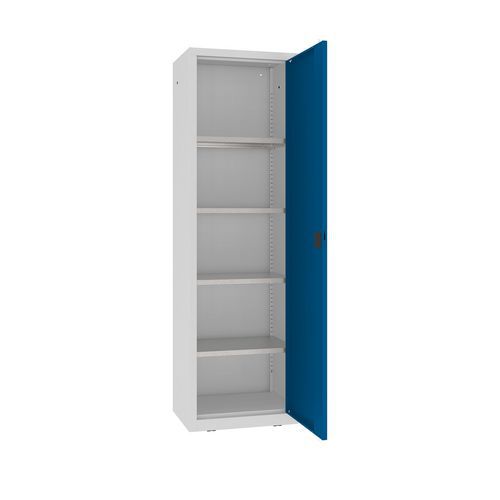 Metalowa szafka warsztatowa, 199 x 60 x 43,5 cm, 4 półki, szara/ciemna. niebieski