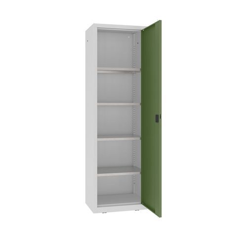 Szafka warsztatowa metalowa, 199 x 60 x 43,5 cm, 4 półki, szaro-zielona