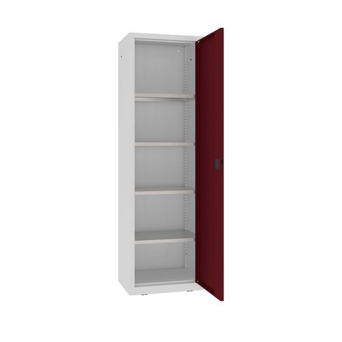 Metalowa szafka warsztatowa, 199 x 60 x 43,5 cm, 4 półki, szara/ciemna. czerwony