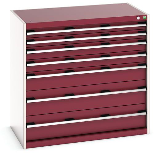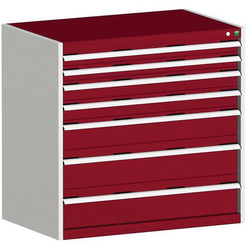 Warsztatowa szafka z szufladami Bott Cubio, 100 x 105 x 65 cm, 7 szuflad, szaro-czerwona