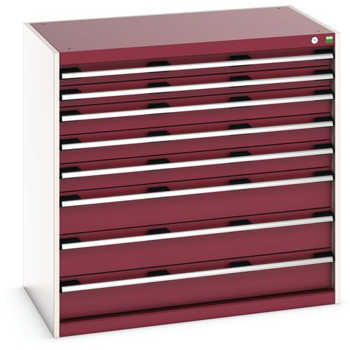 Warsztatowa szafka z szufladami Bott Cubio, 100 x 105 x 65 cm, 8 szuflad, szaro-czerwona