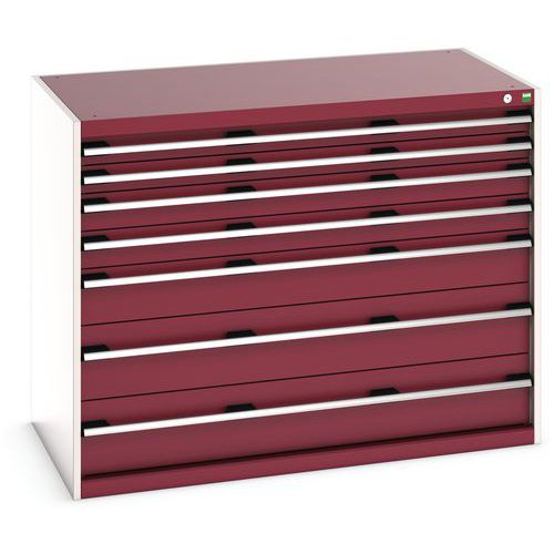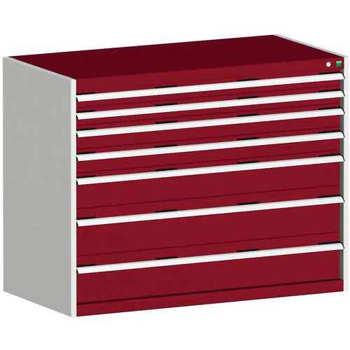 Warsztatowa szafka z szufladami Bott Cubio, 100 x 130 x 75 cm, 7 szuflad, szaro-czerwona