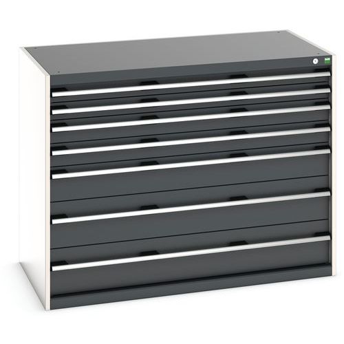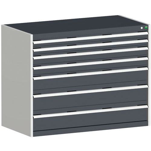 Warsztatowa szafka z szufladami Bott Cubio, 100 x 130 x 75 cm, 7 szuflad, szaro-antracyt