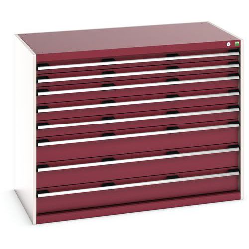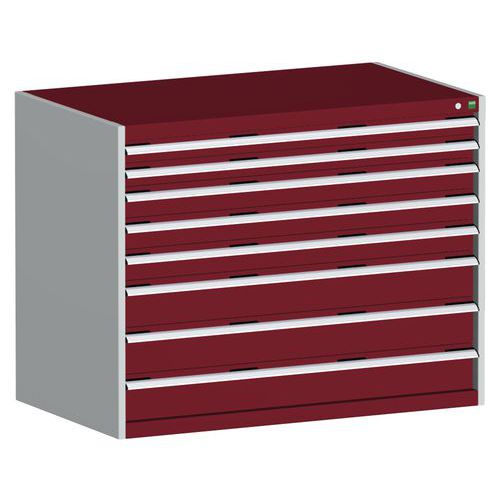 Warsztatowa szafka z szufladami Bott Cubio, 100 x 130 x 75 cm, 8 szuflad, szaro-czerwona
