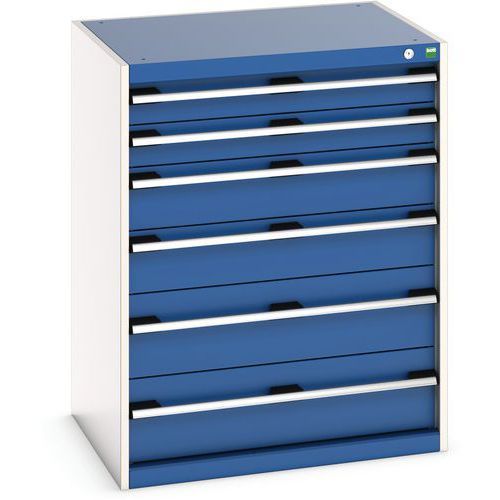 Warsztatowa szafka z szufladami Bott Cubio, 100 x 80 x 65 cm, 6 szuflad, szaro-niebieska