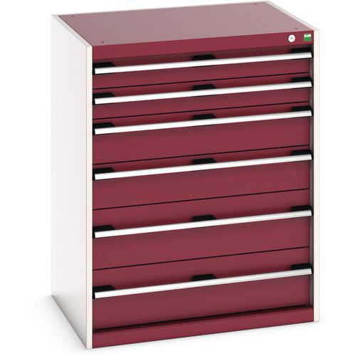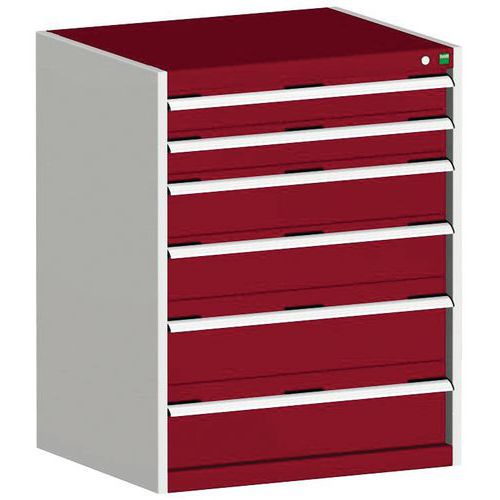 Warsztatowa szafka z szufladami Bott Cubio, 100 x 80 x 65 cm, 6 szuflad, szaro-czerwona