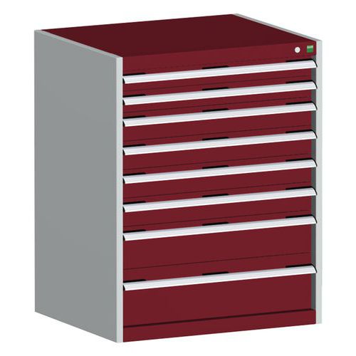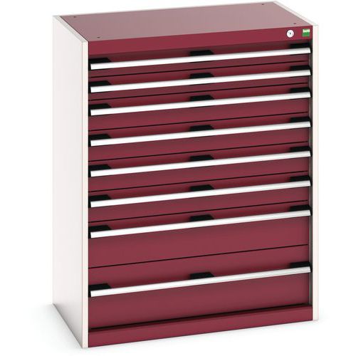 Warsztatowa szafka z szufladami Bott Cubio, 100 x 80 x 52,5 cm, 8 szuflad, szaro-czerwona