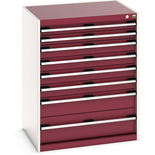 Warsztatowa szafka z szufladami Bott Cubio, 100 x 80 x 65 cm, 8 szuflad, szaro-czerwona