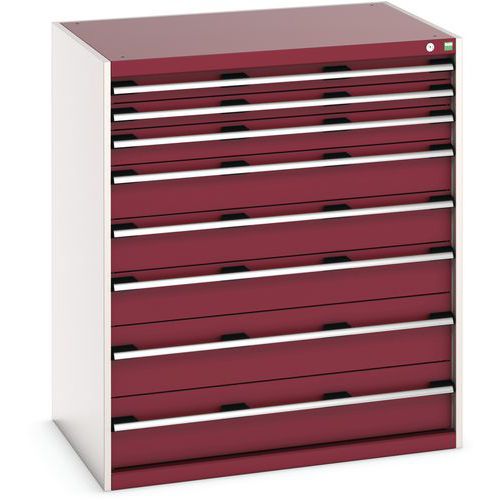 Warsztatowa szafka z szufladami Bott Cubio, 120 x 105 x 75 cm, 8 szuflad, szaro-czerwona