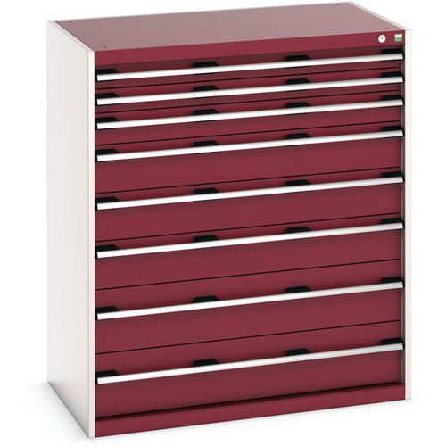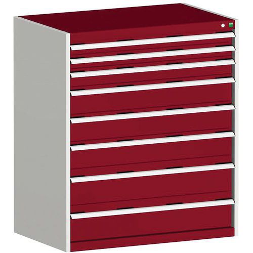 Warsztatowa szafka z szufladami Bott Cubio, 120 x 105 x 65 cm, 8 szuflad, szaro-czerwona