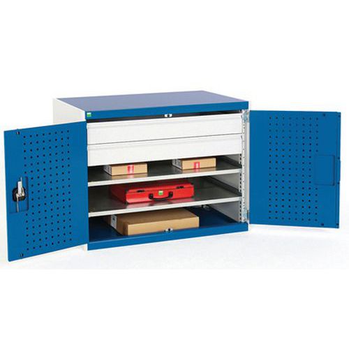 - Wzmocnione drzwi skrzydłowe z perforowaną stroną wewnętrzną do przechowywania narzędzi.