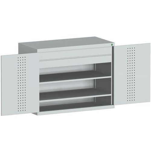 - Wzmocnione drzwi skrzydłowe z perforowaną stroną wewnętrzną do przechowywania narzędzi.
