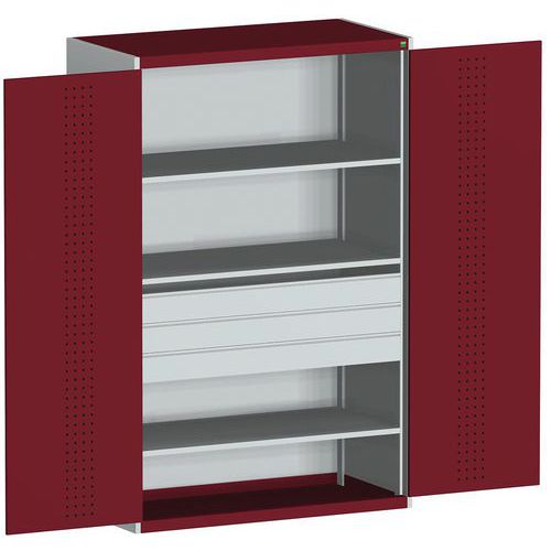 Szafka warsztatowa z szufladami Bott Cubio 160, 200 x 130 x 65 cm, 3 półki, 3 szuflady, szaro-czerwony