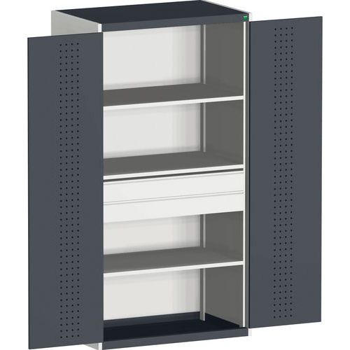 - Wzmocnione drzwi skrzydłowe z perforowaną stroną wewnętrzną do przechowywania narzędzi.