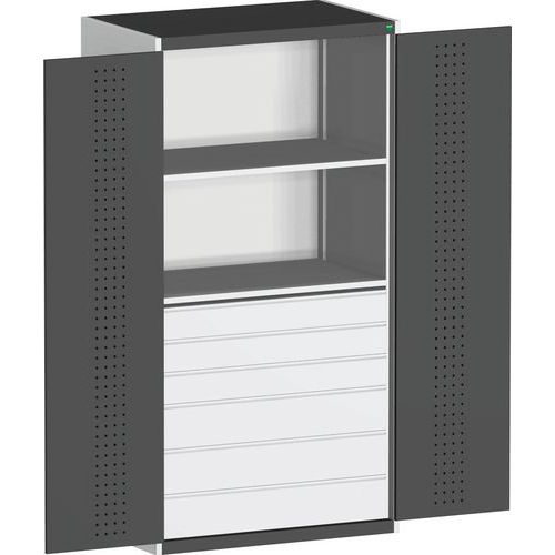 Szafka warsztatowa z szufladami Bott Cubio 160, 200 x 130 x 65 cm, 2 półki, 6 szuflad, szaro-antracyt