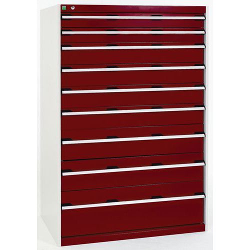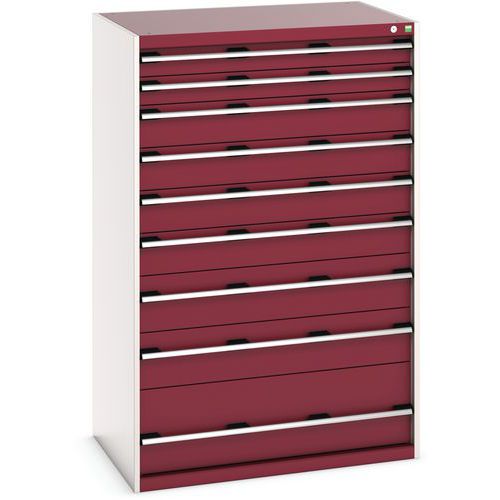 Warsztatowa szafka z szufladami Bott Cubio, 160 x 105 x 75 cm, 9 szuflad, szaro-czerwona