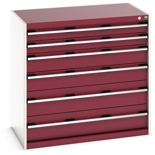 Szafka warsztatowa z szufladami Bott Cubio 200, 100 x 105 x 65 cm, 6 szuflad, szaro-czerwona