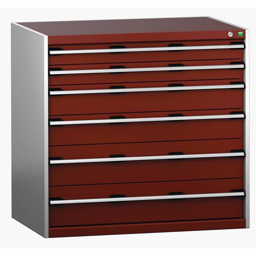 Szafka warsztatowa z szufladami Bott Cubio 200, 100 x 105 x 75 cm, 6 szuflad, szaro-czerwona