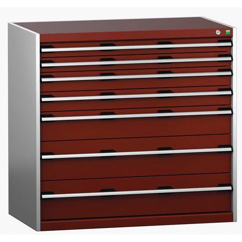 Szafka warsztatowa z szufladami Bott Cubio 200, 100 x 105 x 65 cm, 7 szuflad, szaro-czerwona