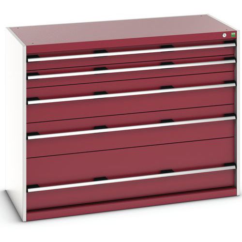 Warsztatowa szafka z szufladami Bott Cubio 200, 100 x 130 x 65 cm, 5 szuflad, szaro-czerwona