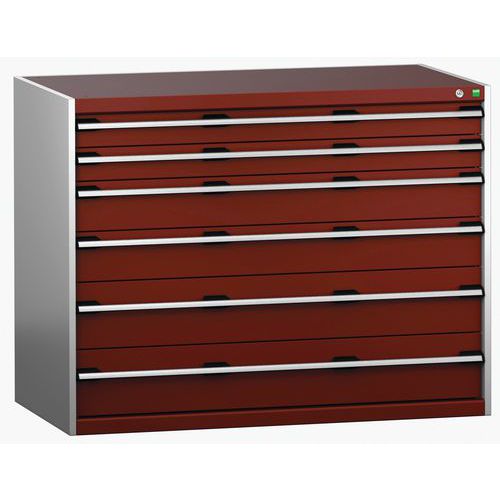 Szafka warsztatowa z szufladami Bott Cubio 200, 100 x 130 x 75 cm, 6 szuflad, szaro-czerwona